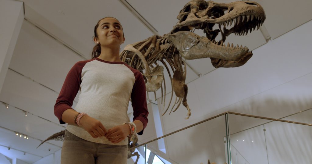 Dino Dana The Movie finds 10-year-old Dana, who sees dinosaurs in the real world, completing an experiment that asks where all the kid dinosaurs are. To find the answer, Dana, her older sister Saara, and their new neighbors Mateo and Jadiel go on a dinosaur journey bigger than anything Dana has ever faced before. This movie version of Dana's thrilling dinosaur adventure is now available in Japanese for planetariums and giant screen!