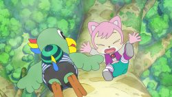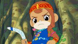Shimajiro and his friends fly to a mysterious island in search of the enormous Mother Tree. They encounter the island's natives and quickly become friends. But two mischievous spiders kidnap Shimajiro's little sister Hannah! Can Shimajiro and his friends rescue Hannah?